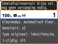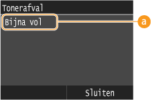 <Bijna vol>: Het tonerafvalreservoir is bijna vol. Het is raadzaam het reservoir te vervangen.