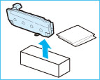 Doe het verwijderde tonerafvalreservoir in een zak, bind de zak goed dicht om te zorgen dat er geen toner uit kan ontsnappen, en plaats de zak in een doos.