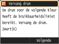 Waar in de onderstaande beschrijvingen "XXXX" wordt weergegeven, wordt in het werkelijke bericht de kleur van de desbetreffende drumeenheid weergegeven.
