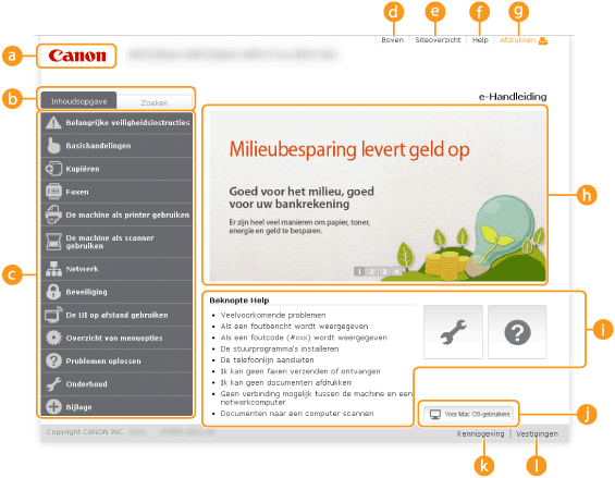 Deze pagina wordt weergegeven als u de e-Handleiding start.