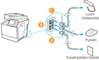 Kytke puhelinjohto laitteen puhelinlinjaliitäntään (
