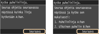 Napauta kohtaa <Seuraava>, kun puhelinlinja on kytketty.