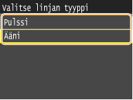 Aseta puhelinlinjan tyyppi seuraavien ohjeiden mukaisesti. Jos et ole varma käyttämäsi puhelinlinjan tyypistä, ota yhteyttä puhelinyhtiöösi. <Valitse linjan tyyppi> ei ole välttämättä käytettävissä kaikissa maissa.