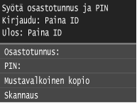 Napauta kohtaa <Osastotunnus> (tai <Järjestelmänvalvojan tunnus>).