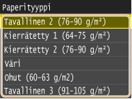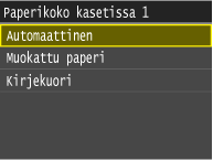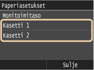 Jos lisäät paperia, jota ei tunnisteta automaattisesti, kuten LGL tai EXEC, määritä paperi etukäteen kohdassa <Paperikokolista 1 tunnistusta varten> tai <Paperikokolista 2 tunnistusta varten>.