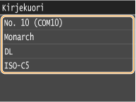 Jos asetat kirjekuoren paperikasetissa 1