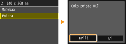 Napauta tallennettua kokoa, jonka haluat poistaa.