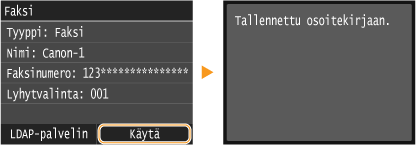 LDAP-palvelimelle tallennetun määritetyn vastaanottajan käyttäjänimi ja faksinumero/sähköpostiosoite syötetään automaattisesti LDAP-palvelimelle tallennetun sisällön mukaan.