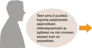 Siirry kohtaan <Suosikkiasetukset> ja tallenna yhdistelmä, jossa asetusten <2-puolinen> ja <Lajittelu> arvona on <Kyllä>. Sitten voit käyttää tätä asetusyhdistelmää helposti aina tarvitessasi. Usein käytettyjen kopiointiasetusten tallentaminen