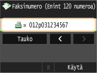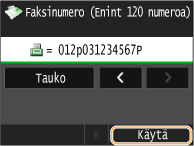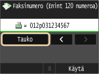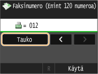 Tarvittaessa voit lisätä tauon faksinumeron loppuun napauttamalla kohtaa <Tauko>.