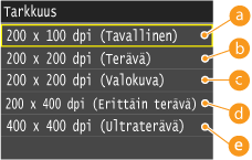 Voit valita asiakirjatyypille sopivan tarkkuuden. Mitä suurempi tarkkuus on, sen selkeämpi kuvasta tulee, mutta sen lähettäminen vie kauemmin.
