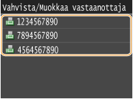 Määritä vastaanottajat käyttämällä käyttöpaneelin numeropainikkeita.