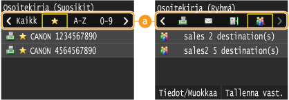 Osoitekirjan avulla voit määrittää vastaanottajan valitsemalla tallennettujen vastaanottajien luettelosta tai etsimällä vastaanottajaa nimellä. Voit myös määrittää vastaanottajan suoraan syöttämällä vastaanottajalle määritetyn kolminumeroisen luvun (lyhytvalintakoodin).