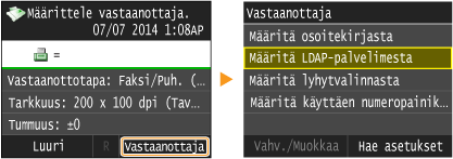 Jos toimistossasi on asennettuna LDAP-palvelin, voit myös määrittää palvelimeen tallennetut vastaanottajat. Kun haluat määrittää vastaanottajat, avaa LDAP-palvelin laitteen avulla ja valitse sitten vastaanottaja.