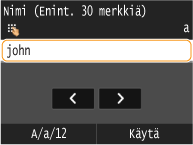 Napauttamalla <A/a/12> voit siirtyä syöttötilasta toiseen (lukuun ottamatta faksinumerolla hakua).