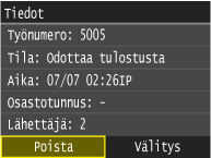 Napauta kohtaa <Työn tila>.