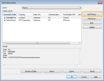 Napsauta [Edit Address Book] (Muokkaa osoitekirjaa) -valintaikkunan kohtaa [Add Person] (Lisää henkilö).