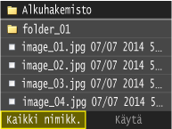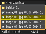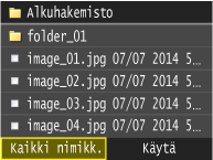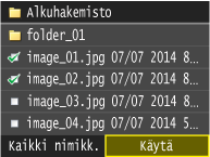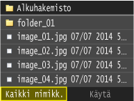 Jos USB-muistilaitteen kansiossa on useita tiedostoja, tulostettavien kuvatiedostojen skannaus vie enemmän aikaa. Käytä tietokonetta tarpeettomien tiedostojen poistamiseen USB-muistilaitteesta tai tiedostojen siirtämiseen toiseen kansioon.