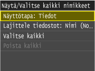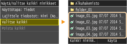 Jos valitsit tiedoston ennen kuin napautat kohtaa <Kaikki nimikk.>, voit valita vain samanmuotoisia tiedostoja.