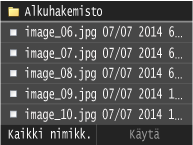 Voit vaihtaa näyttötavan <Tiedot> (joka näyttää tiedostonimet ja muokkauspäivät) tavaksi <Kuvat> (joka näyttää esikatselun). Kuvien esikatselussa voit tarkistaa tiedoston sisällön ennen kuin valitset sen tulostettavaksi.