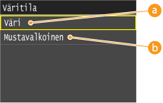 Jos <Väritila>-asetuksena on <Väri>, tätä asetusta ei käytetä.