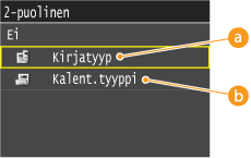 <2-puolinen>-toiminto ei ehkä ole käytettävissä joidenkin paperikokojen tai -tyyppien kanssa.