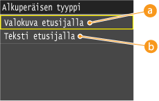 <Pehmeä 2> suorittaa suuremman tasoituksen kuin <Pehmeä 1>. Jos <Pehmeä 1> on valittu eikä tuloksena sittenkään ole tasainen tulostus, valitse <Pehmeä 2>.