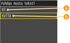 Kun <Puhdas musta teksti> -kohdan asetukseksi on valittu <Kyllä>