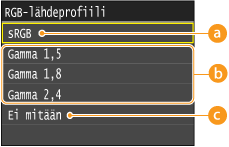 Kun <RGB-lähdeprofiili> -kohdan asetukseksi on valittu <Ei mitään>