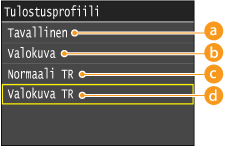 Kun <Tulostusprofiili>-kohdan asetukseksi on valittu <Normaali TR> tai <Valokuva TR>