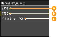 Tätä asetusta käytettäessä harmaasävyarvo lasketaan NTSC-pohjaisella värikonversiomenetelmällä.