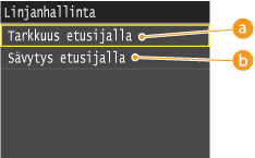 Tällä asetuksella voidaan määrittää viivojen kuvankäsittelytapa. Yleensä on suositeltavaa jättää asetukseksi <Tarkkuus etusijalla>.