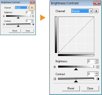 Säätää kuvan kirkkautta ja kontrastia (eroa kuvan vaaleiden ja tummien kohtien välillä). Kun haluat säätää kaavion tarkistuksen aikana, napsauta näytön oikean ylänurkan