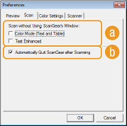 [Automatically Quit ScanGear after Scanning] (Lopeta ScanGear automaattisesti skannauksen jälkeen)