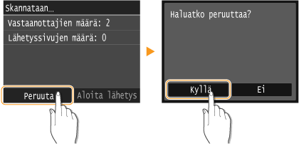 -painikkeen painamisen jälkeen, napauta kohtaa <Peruuta> tai paina käyttöpaneelin