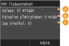 <Aseta PDF-tiedot> tai <Aseta PDF/TIFF-tiedot>
