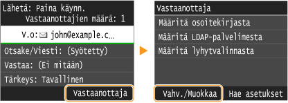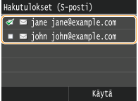 Jos toimistossasi on asennettuna LDAP-palvelin, voit myös määrittää palvelimeen tallennetut vastaanottajat. Kun haluat määrittää vastaanottajat, avaa LDAP-palvelin laitteen avulla ja valitse sitten vastaanottaja.