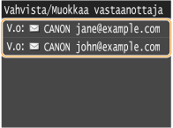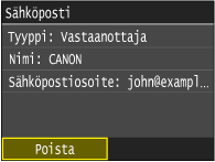 Ennen kuin napautat kohtaa <Vahv./Muokkaa> vaiheessa 1, voit selata määrittämiäsi vastaanottajia napauttamalla kohtaa  /  . Näytä poistettava vastaanottaja ja paina  -painiketta.