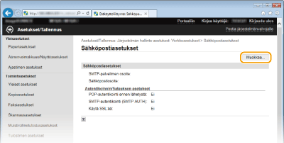 Käytetystä verkosta riippuen SMTP- tai POP3-porttiasetus täytyy ehkä muuttaa ( Porttinumeroiden muuttaminen). Lisätietoja saat Internet-palveluntarjoajaltasi tai verkon pääkäyttäjältä.
