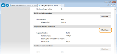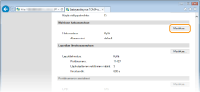 Jos haluat muuttaa Multicast-haun porttinumeron, katso kohta Porttinumeroiden muuttaminen.