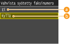 Voit asettaa laitteen vaatimaan faksinumeron syöttämisen kahdesti, kun numero syötetään numeropainikkeilla. Tällä tavalla voit vähentää riskiä, että faksi lähetetään väärään numeroon syöttövirheen takia.