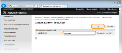 Syötä enintään 24 aakkosnumeerista merkkiä esijaetuksi avaimeksi ja valitse [OK].