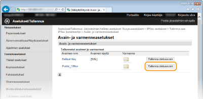 Valitse [Tallenna oletusavain] käytettävän avainparin oikealla puolella.