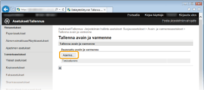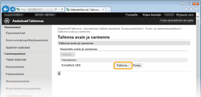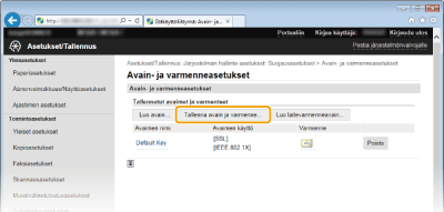 [Avain- ja varmenneasetukset] (avainpareille) tai [CA-varmenteen asetukset] (CA-varmenteille).