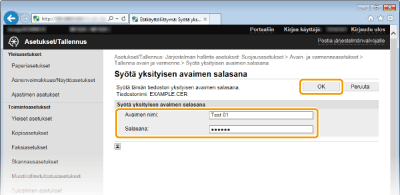 Syötä avainparin nimi ja salasana ja valitse [OK].