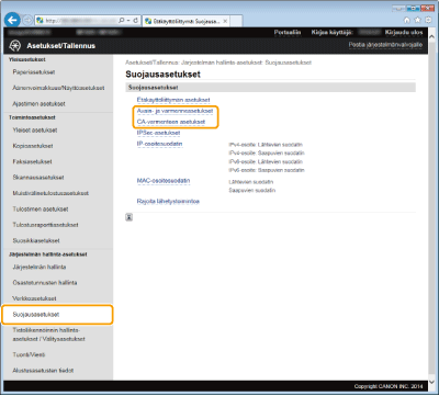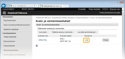 [Avain- ja varmenneasetukset] (avainpareille) tai [CA-varmenteen asetukset] (CA-varmenteille).