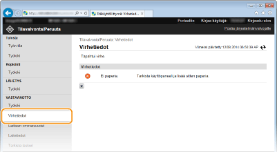 Kun tapahtuu virhe, tämä sivu näytetään, kun napsautat portaalisivulla (pääsivulla) kohdan [Virhetiedot] alla näkyvää viestiä.