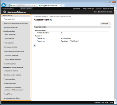 Voit muuttaa [Järjestelmän hallinta-asetukset] vain, kun olet kirjautunut sisään järjestelmänvalvojan tilassa.