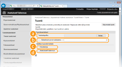 Määritä tuotava tiedosto valitsemalla [Selaa] ja sitten tiedosto tai syöttämällä tiedostopolku kenttään [Tiedostopolku] (tiedostonimi ja sijainti, johon tiedosto on tallennettu).