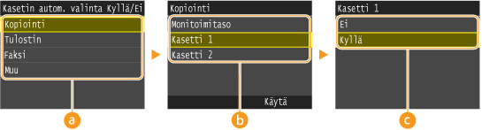 <Kasetin automaattinen valinta Kyllä/Ei>